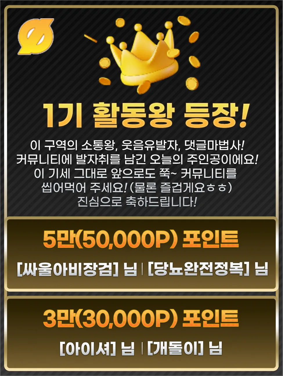 🎉 1기 활동왕 선정 축하드립니다! 🎉