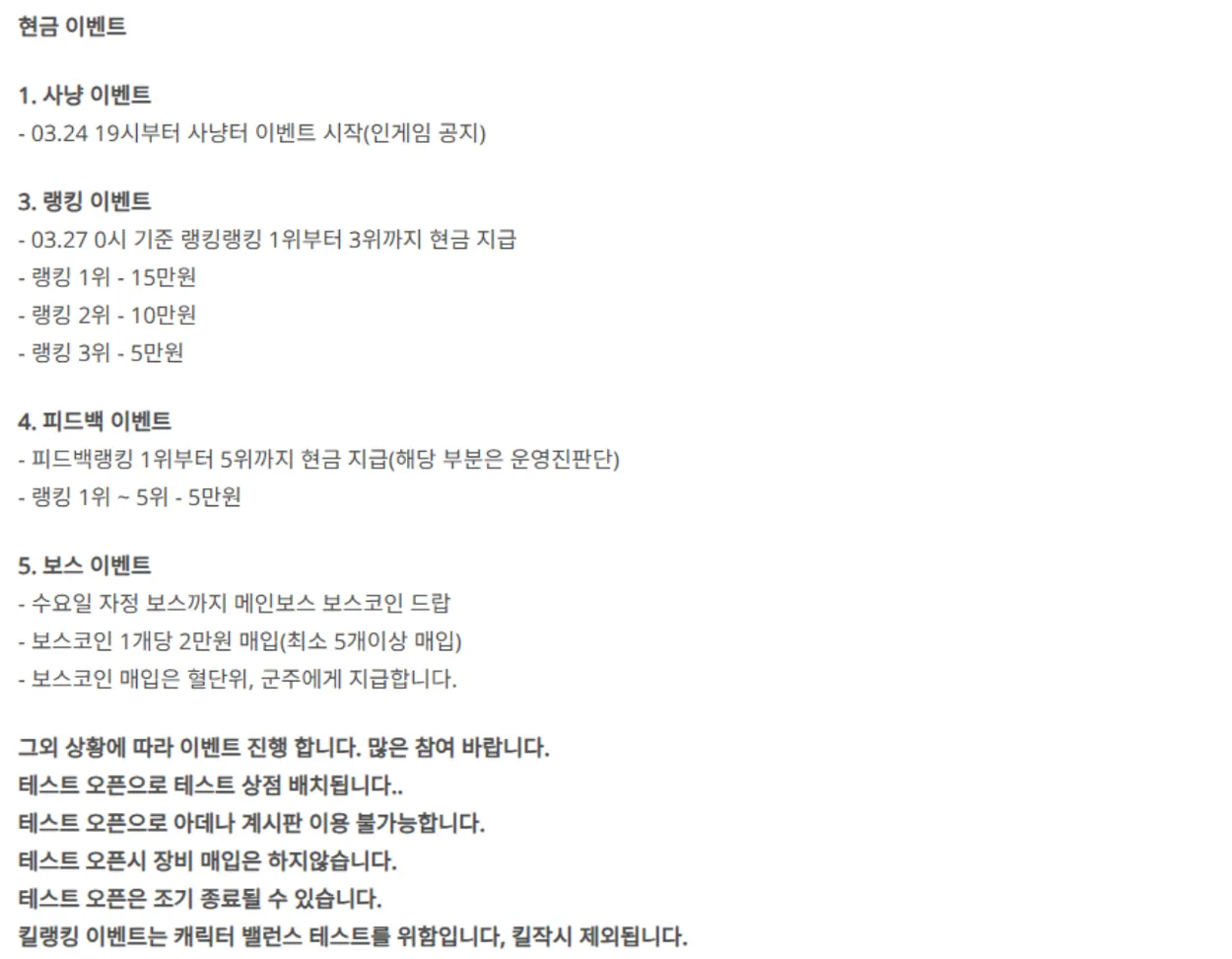 현금이벤트에 랭킹이벤트 격수전 첫날 둘쨋날 이벤트까지 다음차가